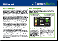 | LumenRadio CRMX user guide A compact user guide for this wireless lighting control system that uses intelligent frequency hopping to avoid interference. |